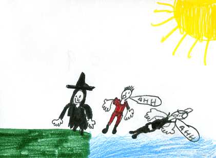 Both children looked into the water to see the fish. The evil witch pushed Lucy and Andy into the lake! The witch thought she had killed them but she didn't know about the magic.Lucy and Andy found themselves back in their own world!