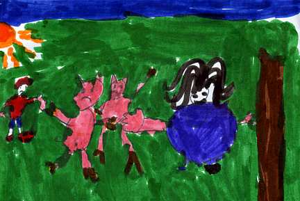 "OK, let's go to find the wolf by ourselves," said the Second Little Pig to the First Little Pig. When they had gone, Andy stood up and said,