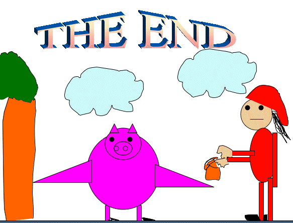 Then Little Red Riding Hood went to her Grandma's house. The pig was the bird that Little Red Riding Hood saw. He flew over to Grandma's house because he wanted to get the slime. When the pig got to Grandma's house, Grandma hit him with her walking stick and he died. So Grandma got her slime.